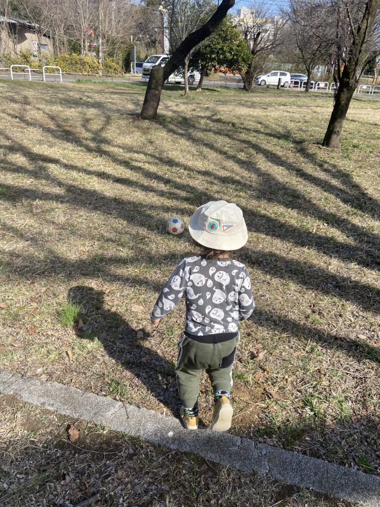 最近ゆうとの遊びがモールや室内のアスレチック遊びが中心だったんですが、寒さも和らいできたのもあり、サッカーをしに公園へ行ってきました!