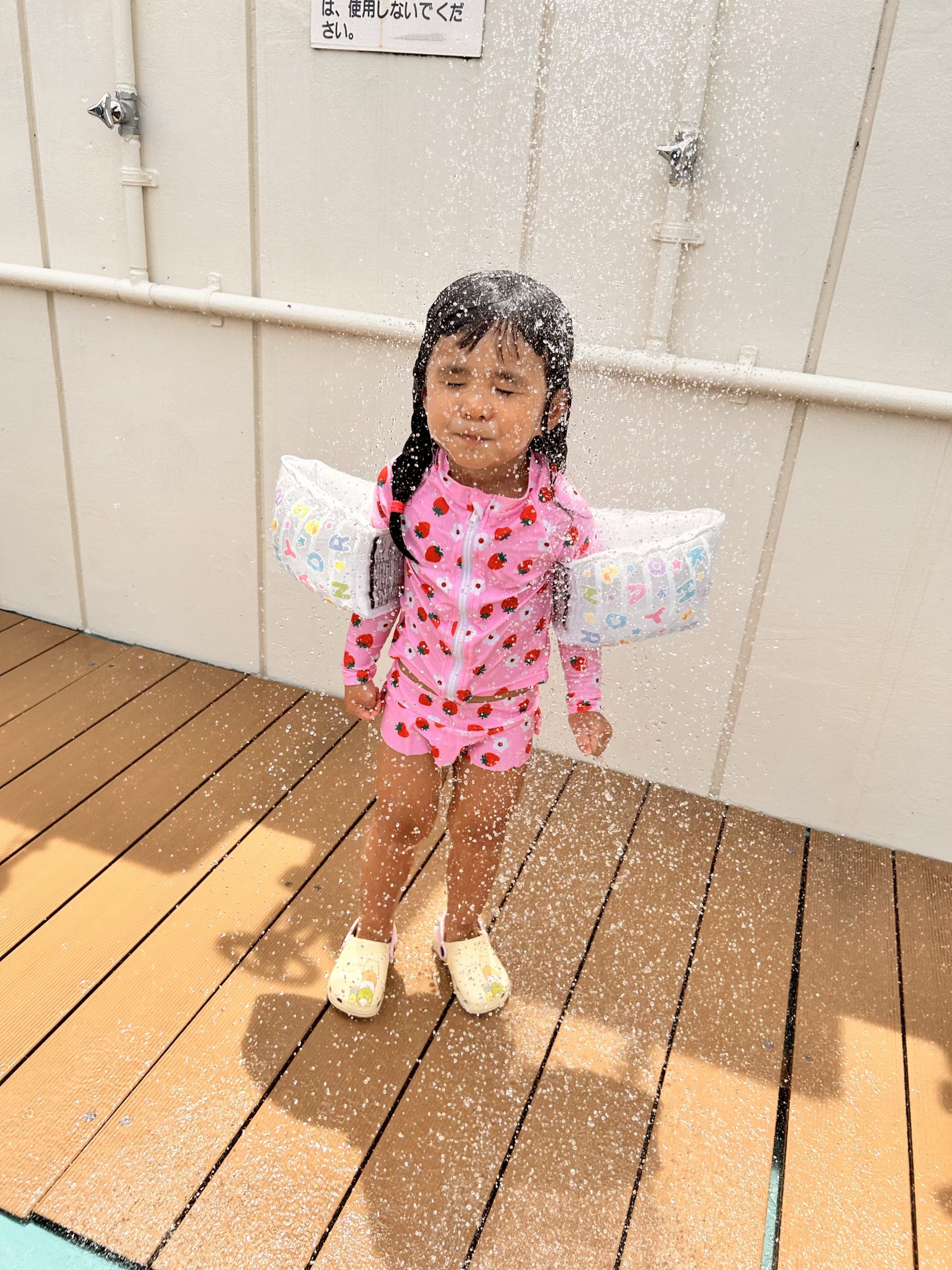 自ら浴びに行く娘🚿